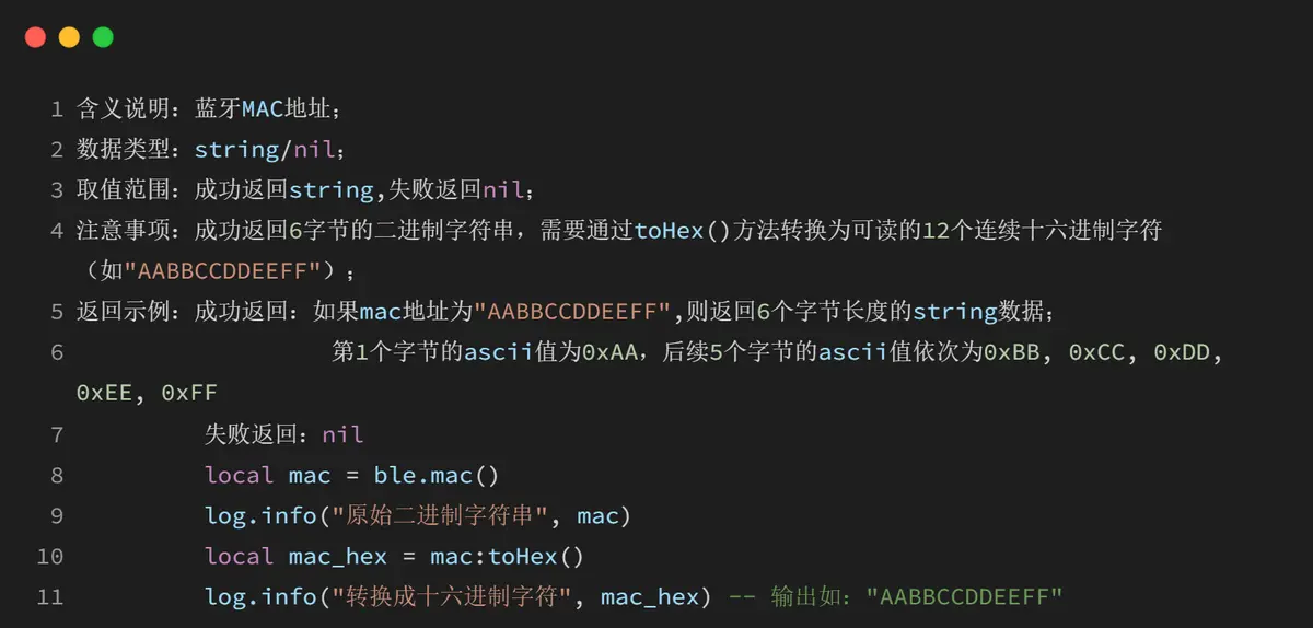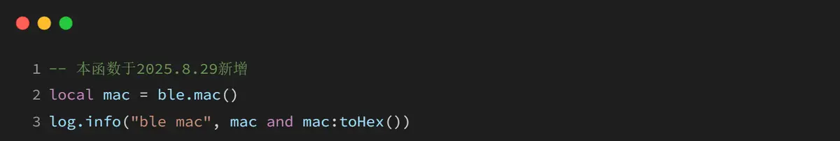 使用wlan.getMac(mode, hexstr) 获取AP或者STA MAC地址,具体用法请参考:https://docs.openluat.com/osapi/core/wlan/#410-wlansetmacmode-mac