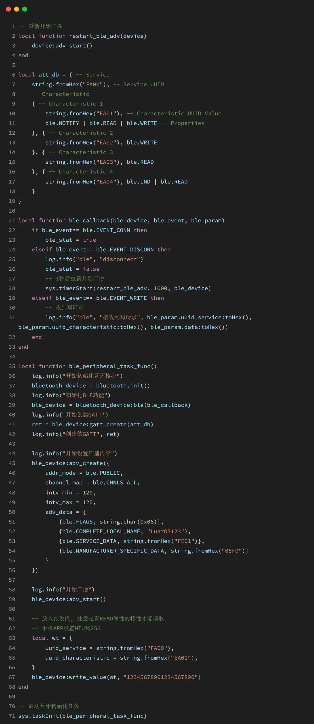 在嵌入式物联网应用中,低功耗蓝牙(BLE)是实现短距离无线交互的关键技术。LuatOS通过其内置的【ble】库,为开发者提供了完整且高效的API接口,支持从角色管理到GATT服务操作的全流程控制,适用于各类传感器节点、智能穿戴设备等场景开发。