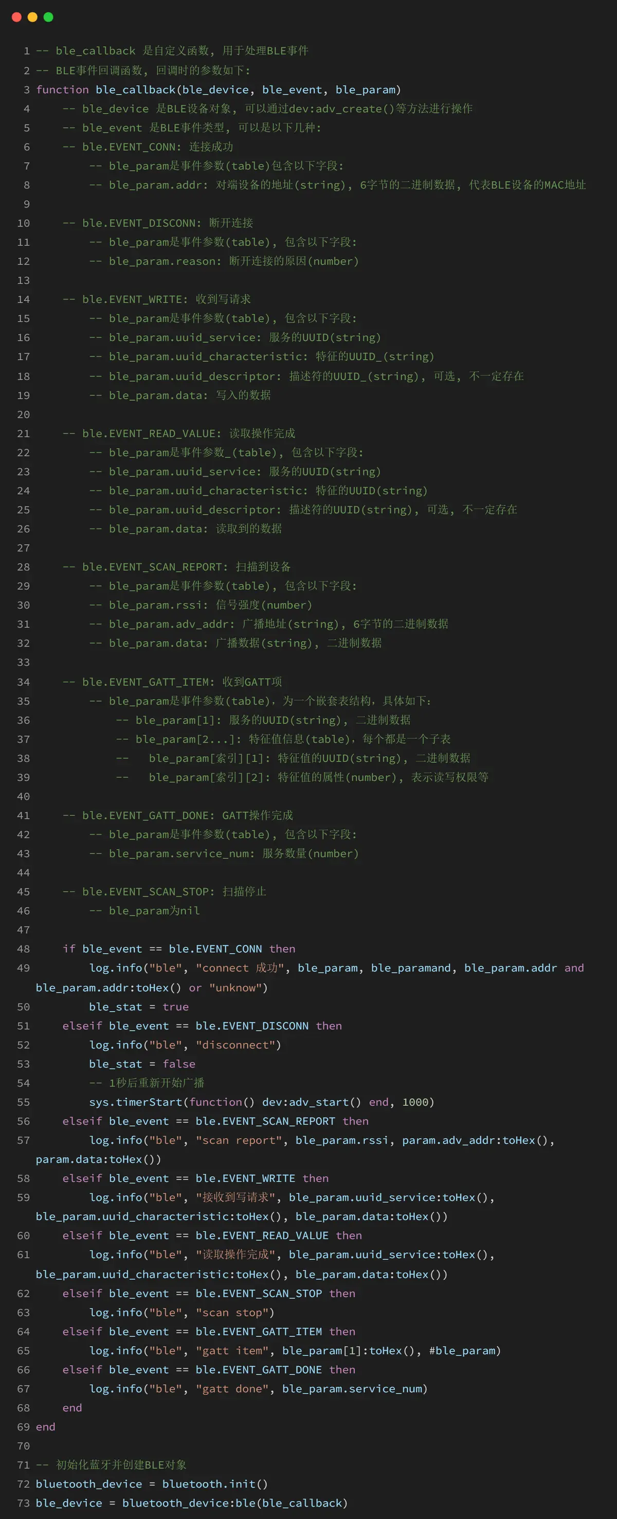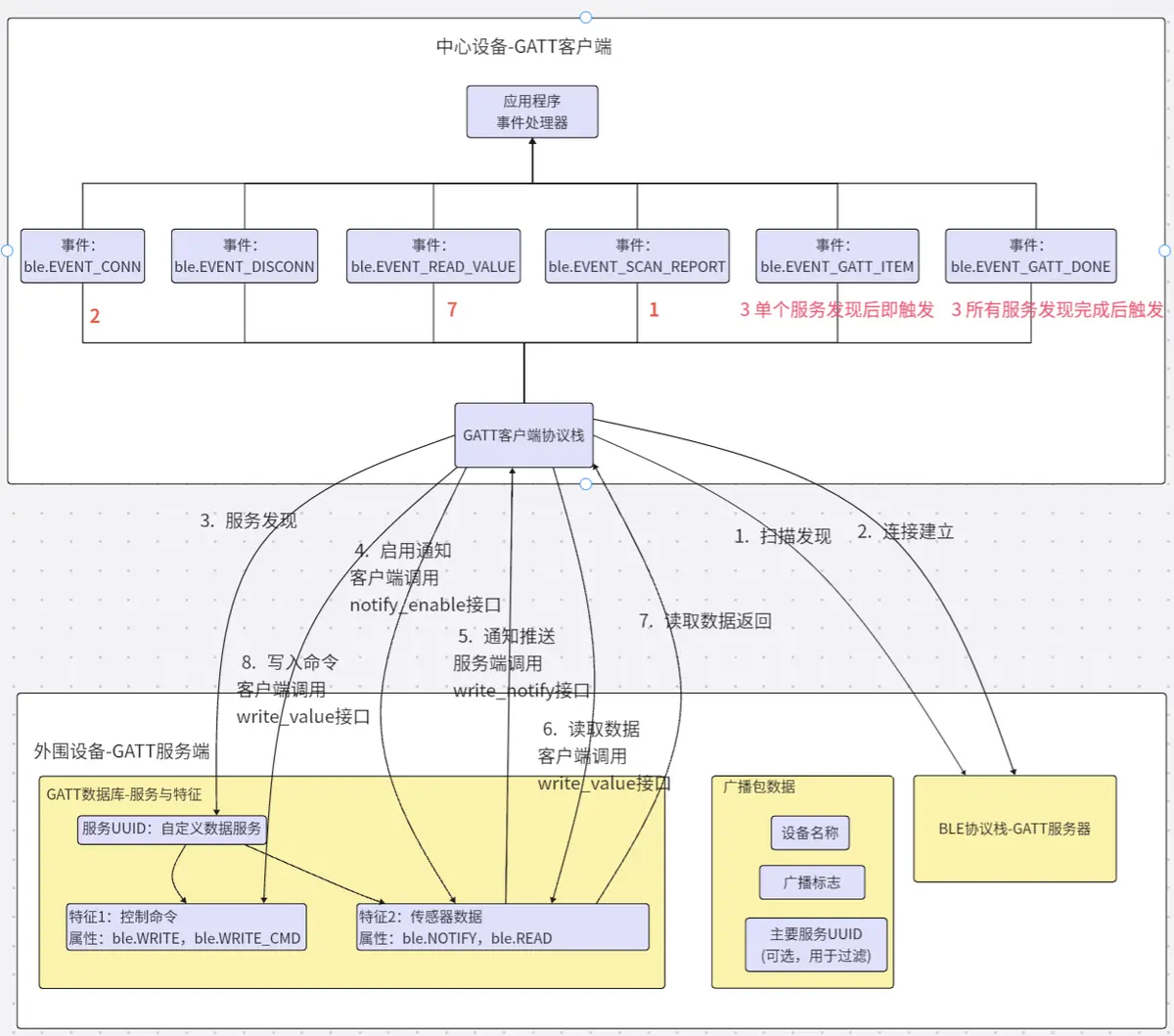 5、处理各类 BLE 事件(连接、断开连接、扫描报告、GATT 操作完成等)