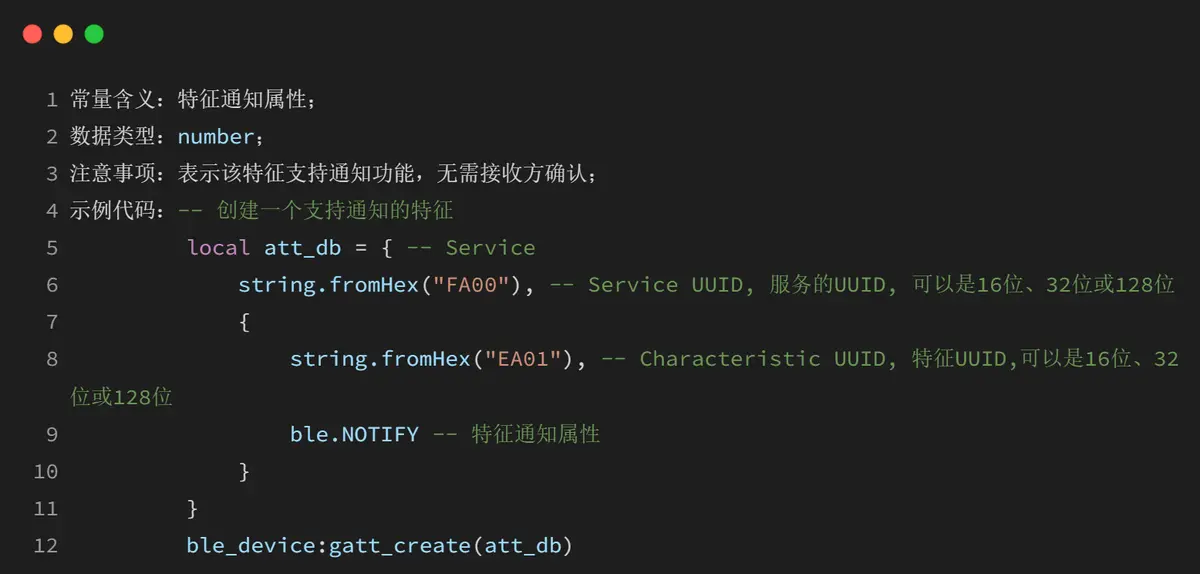 特征属性必须是 ble.NOTIFY | ble.READ | ble.WRITE | ble.IND 的一种或多种组合;