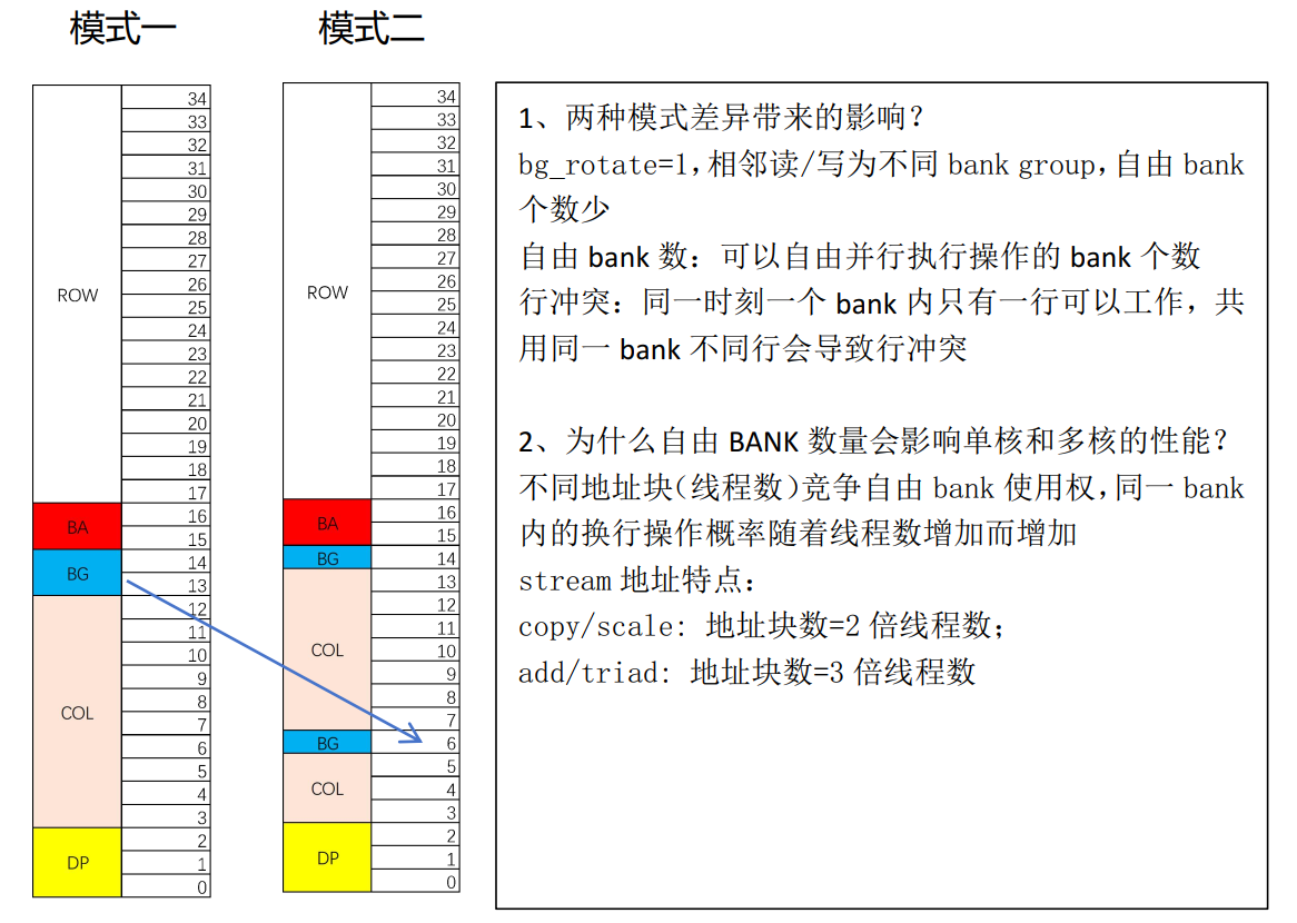 为了均衡单核及多核使用场景,D3000 DDR 控制器设计了两种 BG_Rotate地址映射模式(如下图 1 和 2)。------目前选用的是模式 2 的方式。