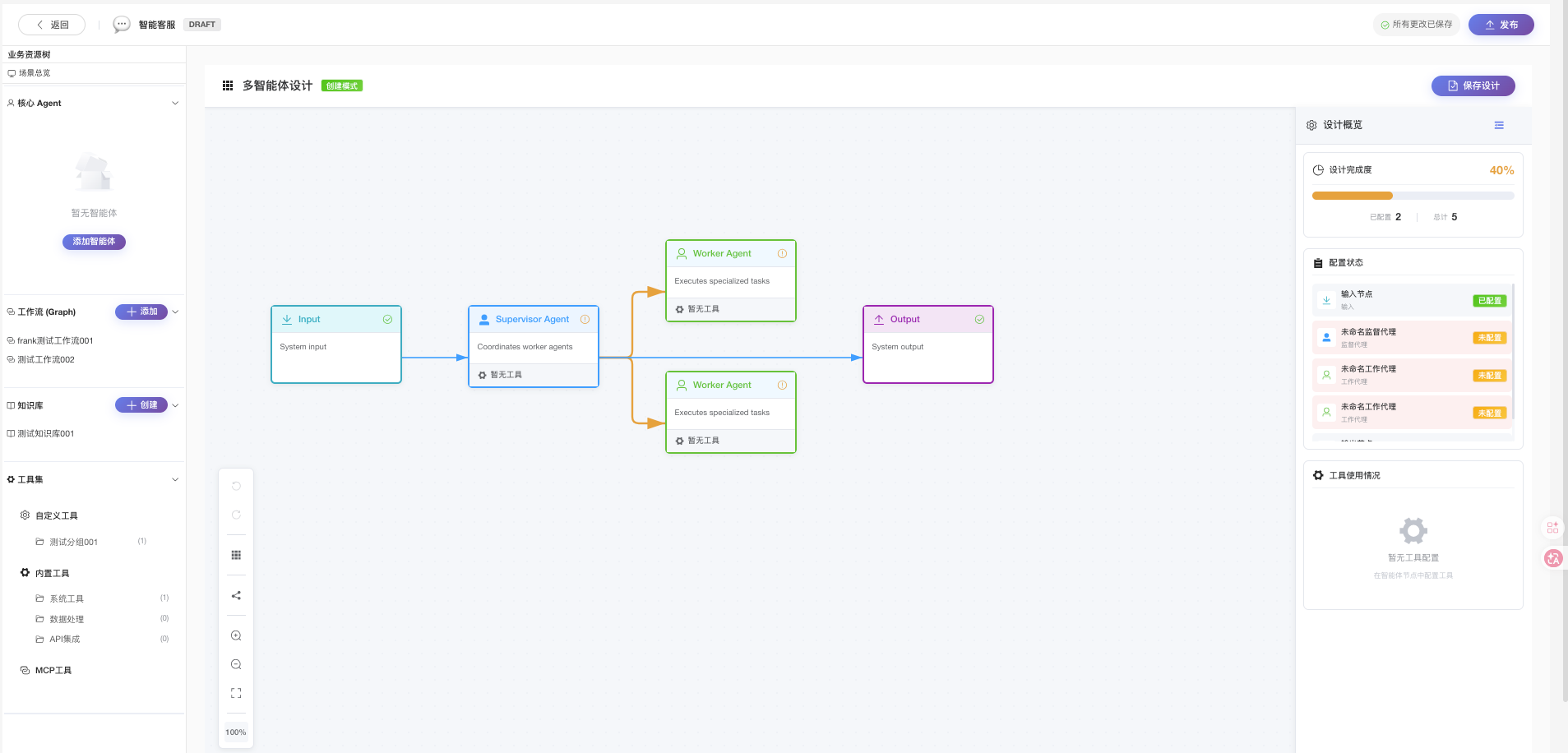 - 统一资源管理:智能体、工作流、知识库、工具一站式管理