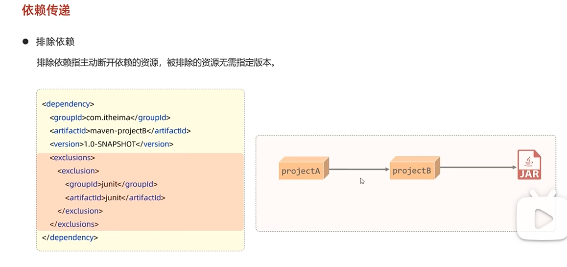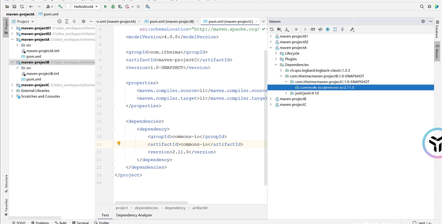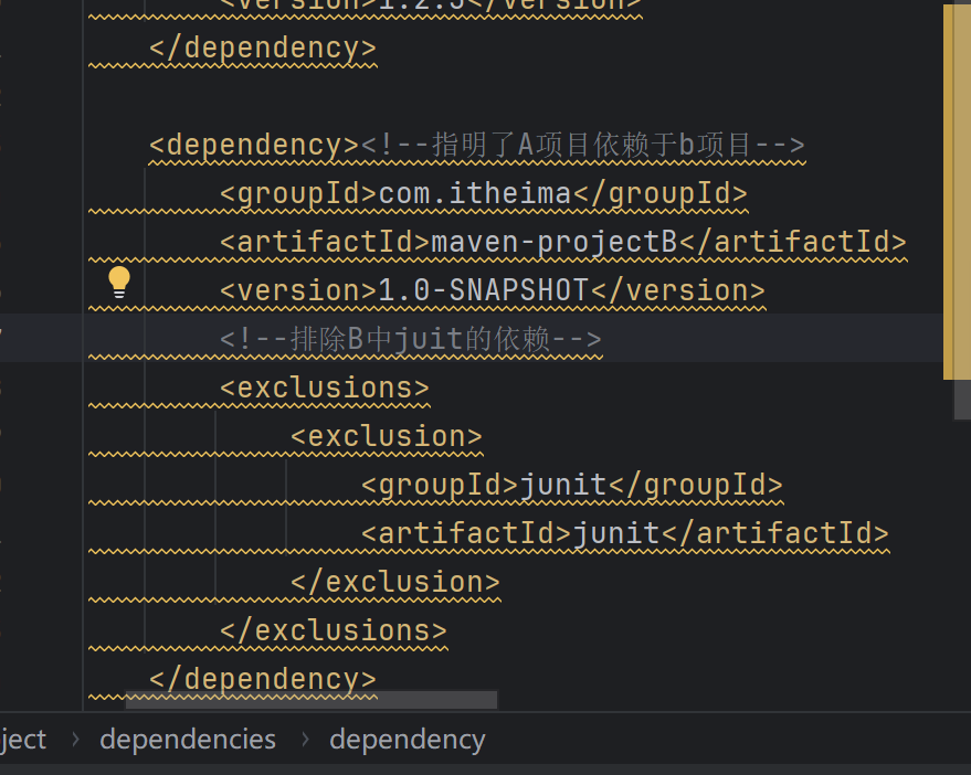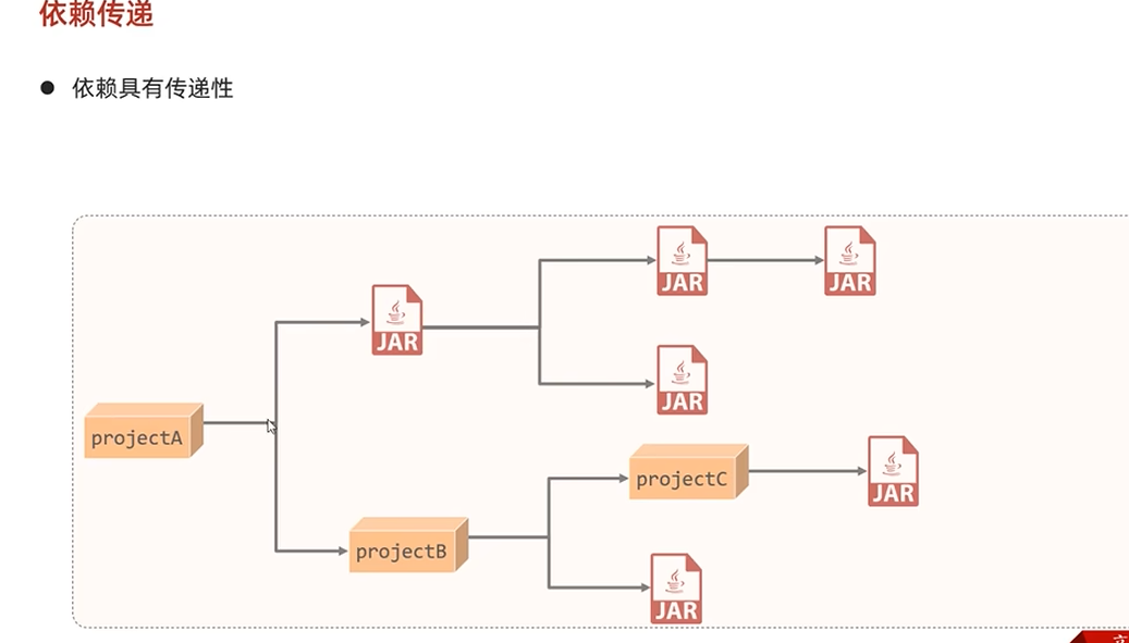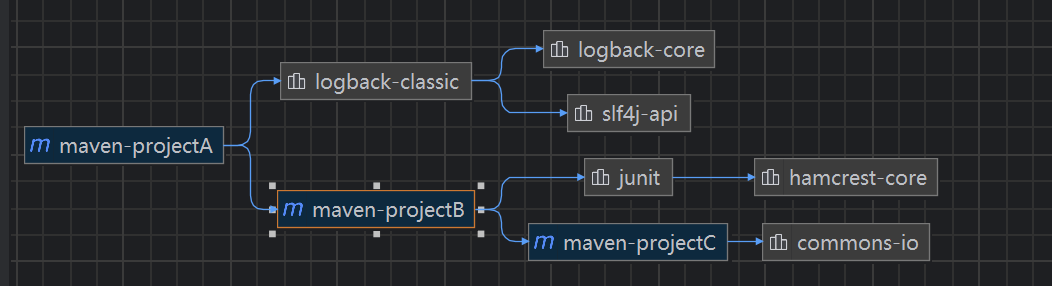 案例A依赖于B B依赖于C这A中的以来的有B和C中的所有依赖