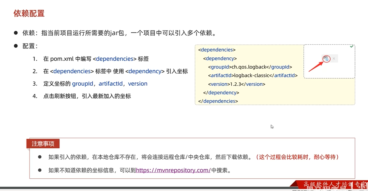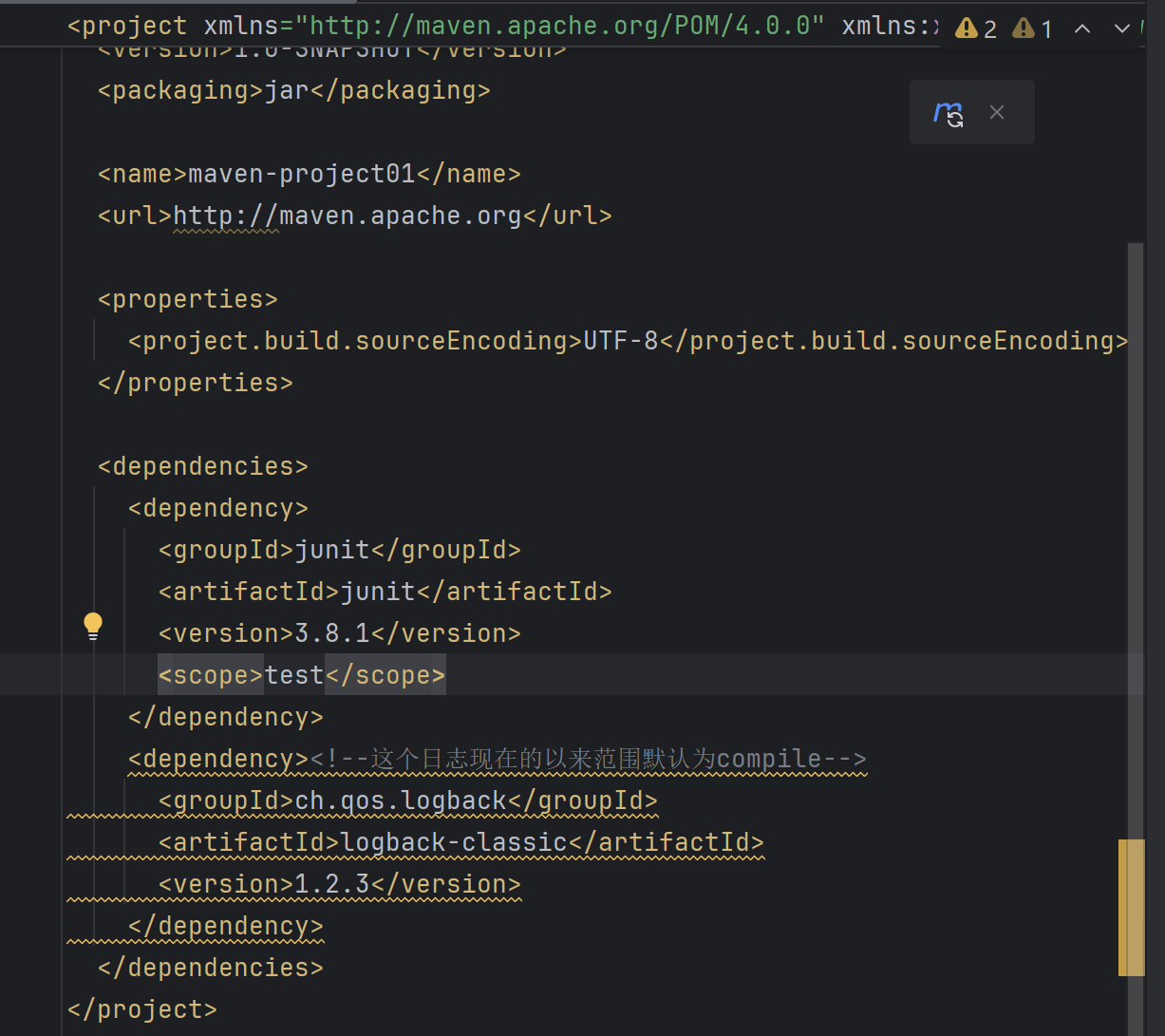 在引入logback依赖只需要在dependency这个标签中引入logback-class这个坐标即可