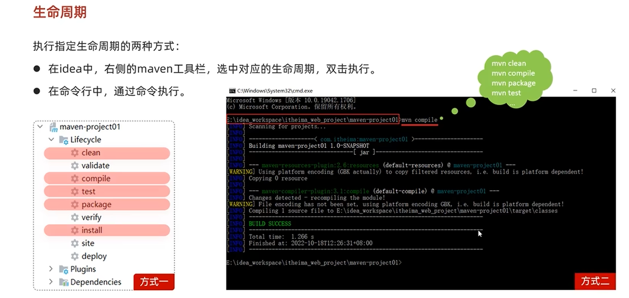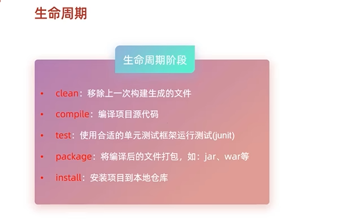在同一套生命周期中阶段是有先后顺序的现运行前面的后运行后面的,后面的阶段需要依赖与前面的阶段,即当我们运行同一套什么周期中的后面一个阶段时前面的阶段也要运行
