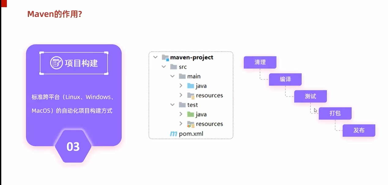 当时在Maven中对其进行了一套标准化,制造了一套标准的构建流程,快速的完成者这项流程