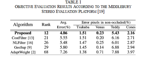 根据评估平台的数据,考虑到平均性能,所提方法目前是最好的局部立体匹配算法之一 。表 I 总结了定量结果 。对比结果表明,所提方法明显优于其他局部方法 。