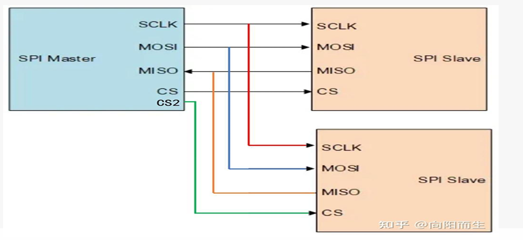 - SCLK:时钟信号线,由主机提供,所有设备通过时钟同步通信;