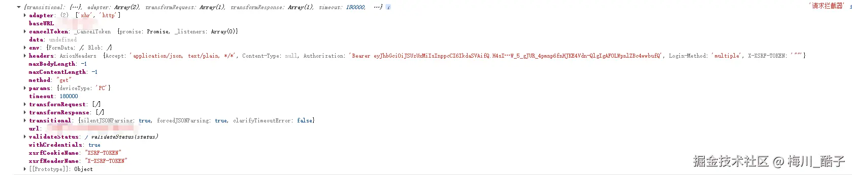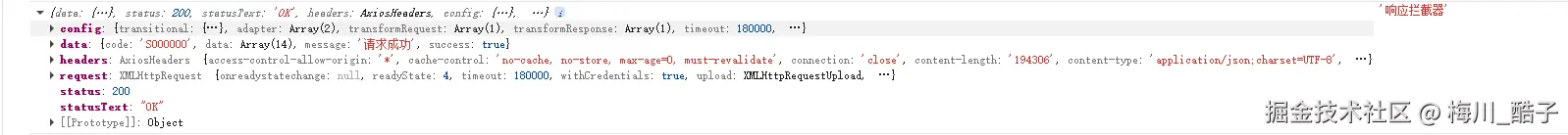 (上图:响应拦截器参数结构:response,需通过 .config 获取请求配置