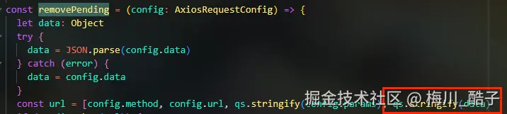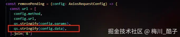 修复方式:响应拦截器调用 removePending 时,统一使用 .config。