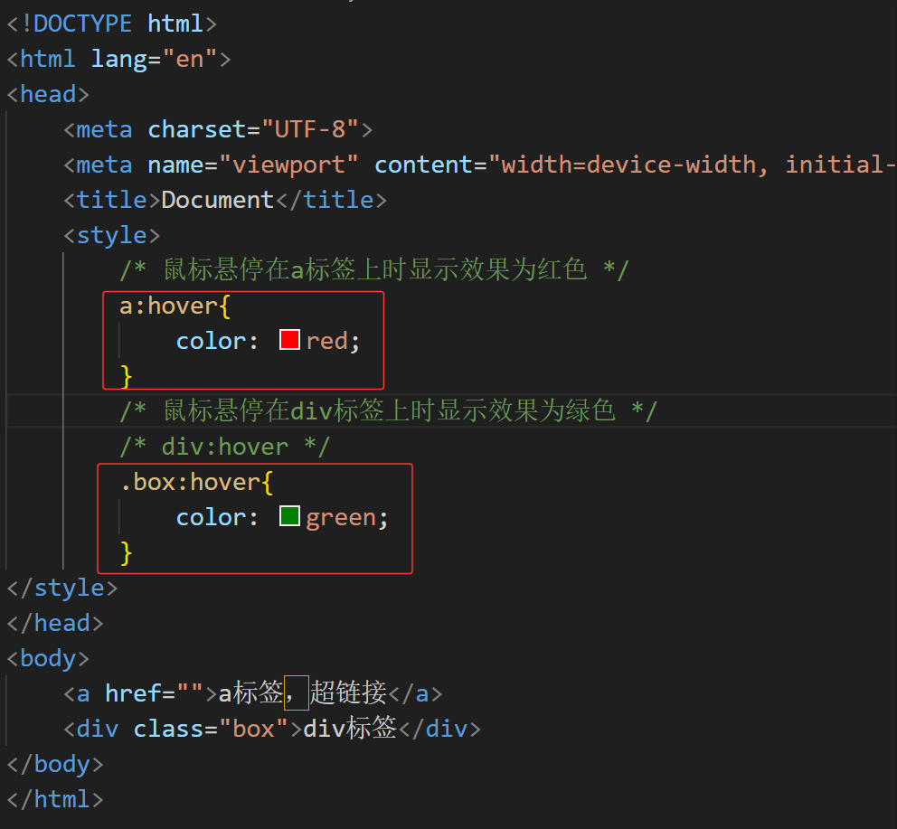鼠标悬停状态(所有标签都可使用):选择器:hover{CSS属性}