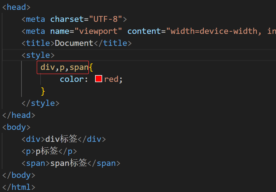 选择器写法:选择器1,选择器2,...,选择器N{CSS属性},选择器之间用 , 隔开