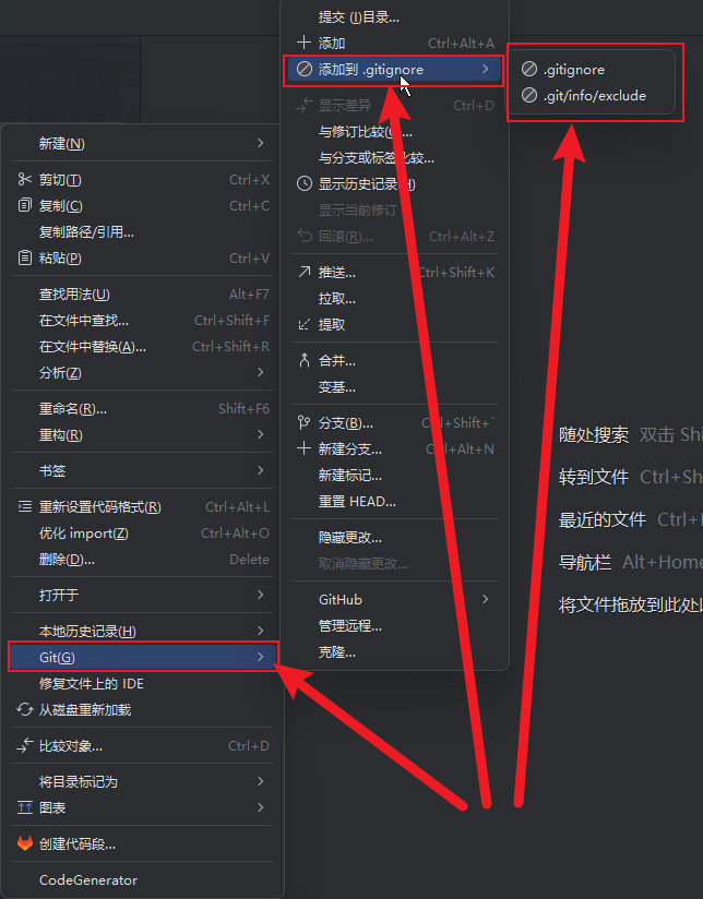 通过idea里的快捷操作添加(最直接)idea中右键文件夹 "添加到 .gitignore" 的选项,直接点击它,这个文件夹就会被自动写入项目的
