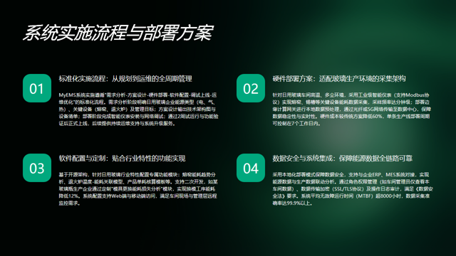 前面我们详细了解了系统在日用玻璃生产各环节的应用及节能优化方案。接下来进入"实施路径与效益评估"环节。这部分将为我们揭示系统落地的具体流程、所需配置,以及能带来的实际效益。了解这些,能让我们清晰系统实施的可行性和潜力。