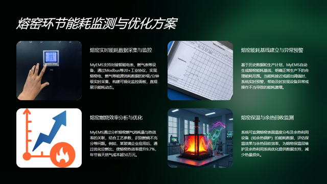 MyEMS为熔窑环节提供了全面且有效的能耗监测与优化方案。该方案先通过支持对接智能电表、燃气表等设备,利用20 +工业协议,实现熔窑电、燃气能源消耗数据的秒级或分钟级实时采集,并构建可视化监控面板,使能耗动态直观呈现。