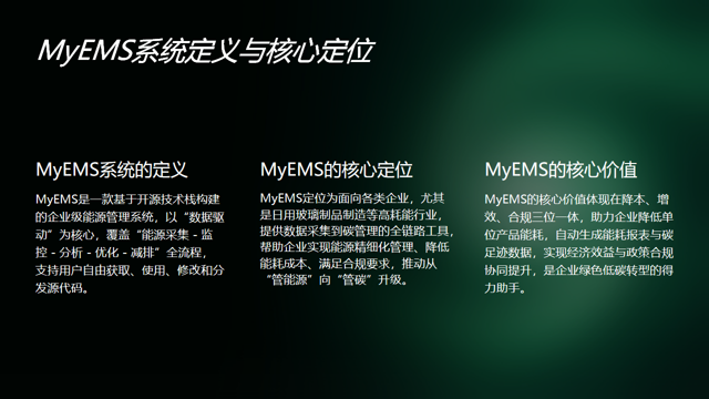 前面我们分析了日用玻璃制品制造行业能源管理现状、面临的挑战以及数字化转型的迫切需求。接下来,我们将聚焦于MyEMS开源能源管理系统。它能为高耗能的日用玻璃行业带来怎样的改变?又具备哪些独特的核心优势?让我们一探究竟。