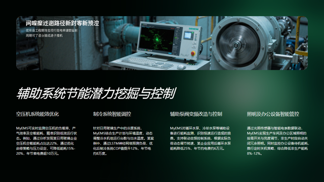 对于辅助泵阀,MyEMS能监测能耗,识别恒速运行的浪费,联动变频控制系统调节转速。某企业应用后,循环水泵能耗降低25%,年节约电费约6万元,实现了辅助泵阀的节能运行。