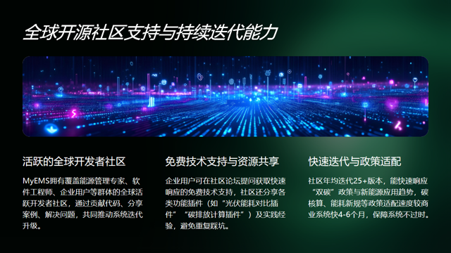 社区迭代版本,能快速响应"双碳"政策与新能源应用趋势,在碳核算、能耗新规等政策适配速度上较商业系统快4 - 6个月,保障系统始终不过时,让企业在政策变化中保持竞争力。
