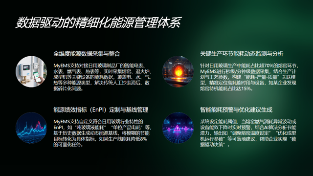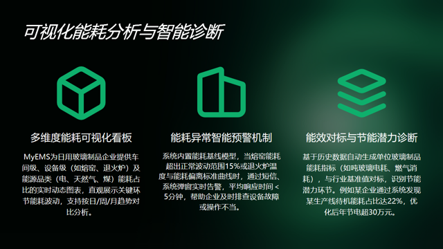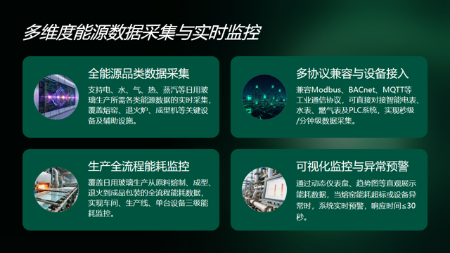 其核心定位面向高耗能行业,特别是日用玻璃制品制造企业,提供从数据采集到碳管理的全链路工具,助力企业实现能源精细化管理,降低能耗成本,满足合规要求,推动从"管能源"向"管碳"升级。