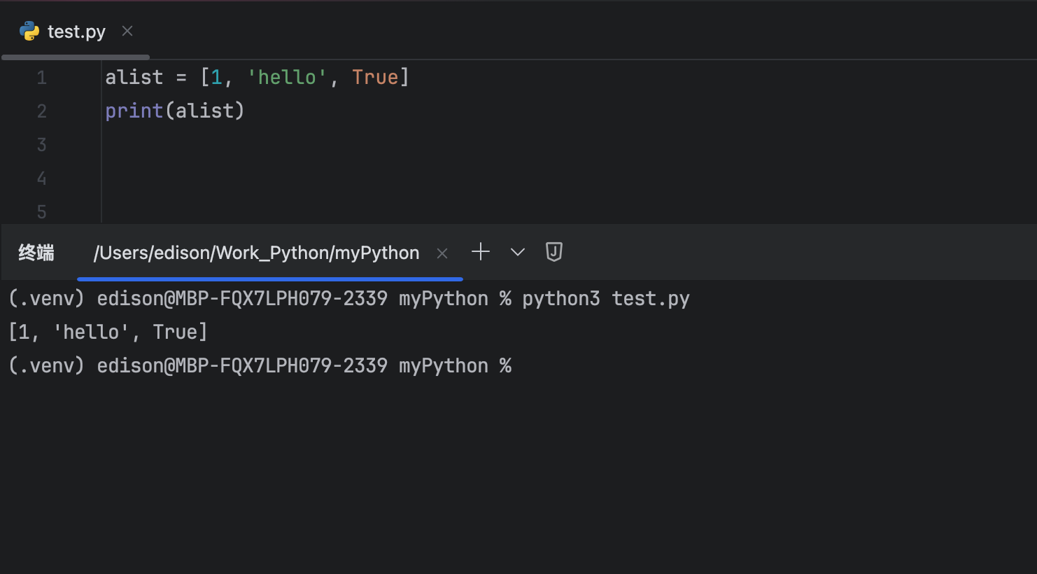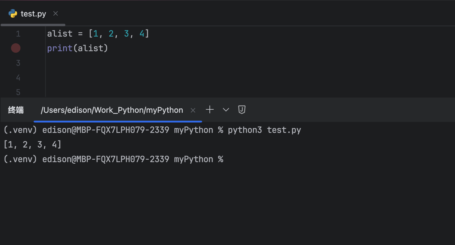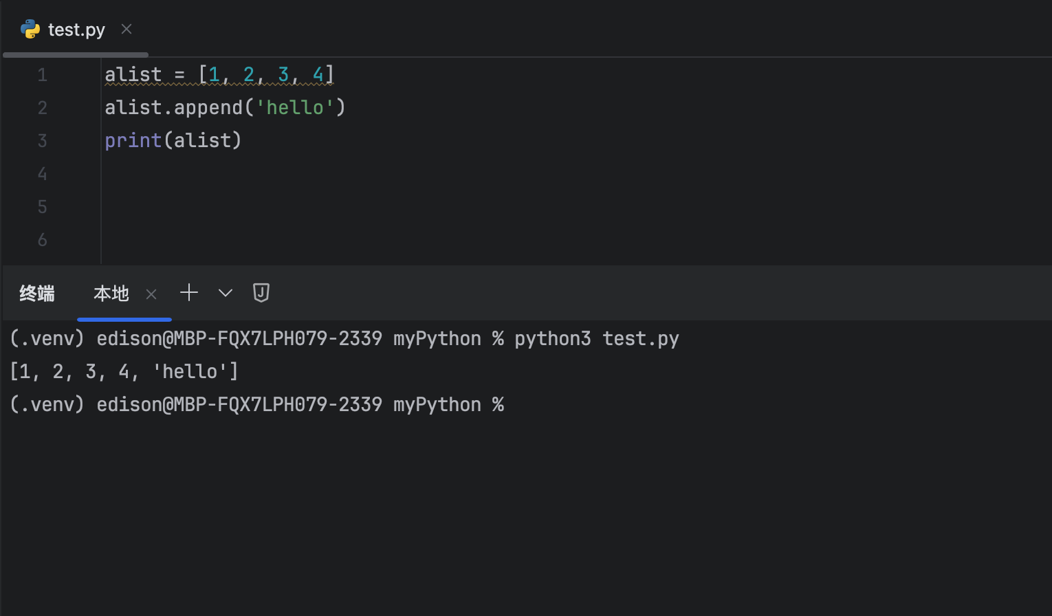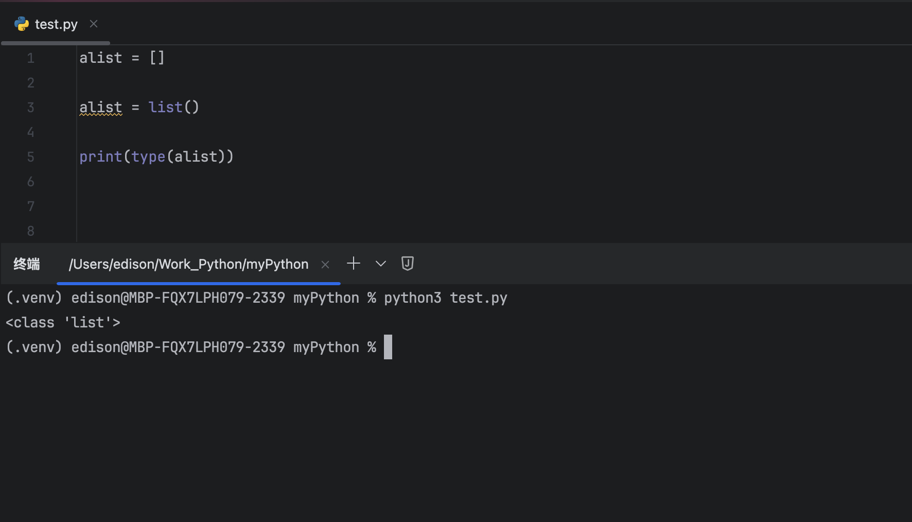 因为 list 本身是 Python 中的内建函数,不宜再使用 list 作为变量名,因此命名为 alist。