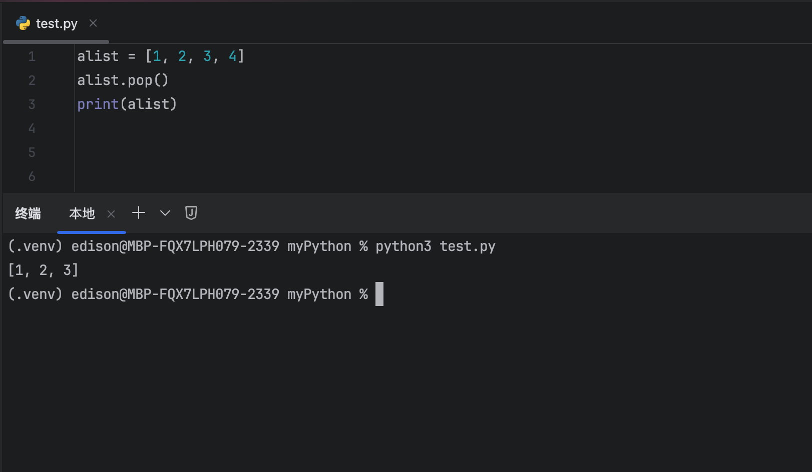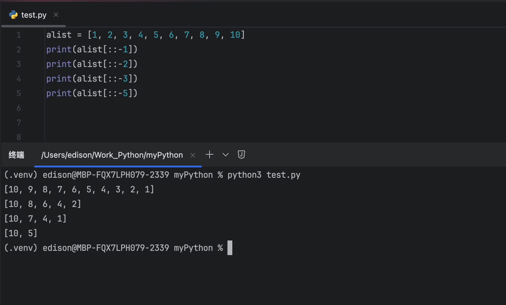 其中 alist[-1] 相当于 alist[len(alist) - 1]。
