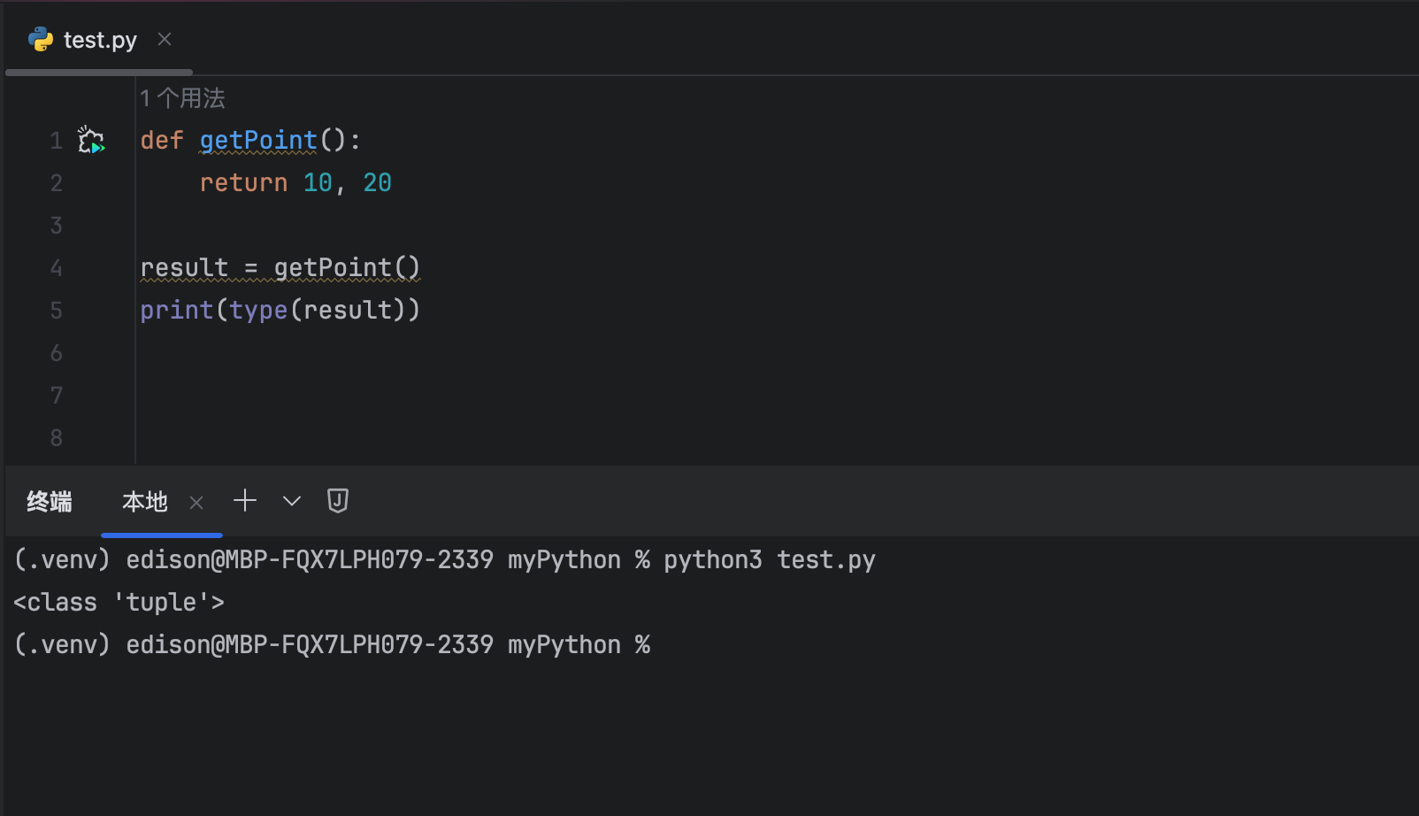 另外,元组在 Python 中很多时候是默认的集合类型。例如,当一个函数返回多个值的时候。