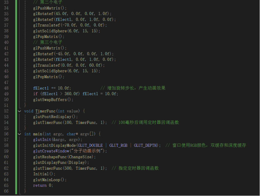 通过 OpenGL 和 GLUT 库,实现分子模型的动态展示: