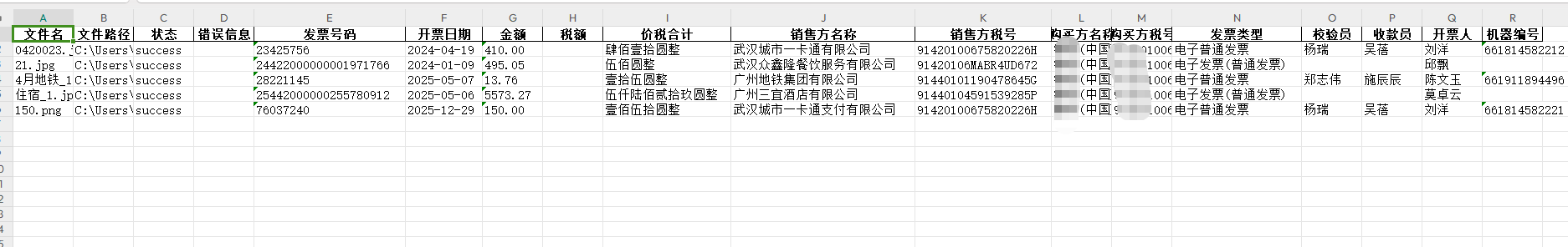 - 自动提取发票号码、日期、金额等关键字段