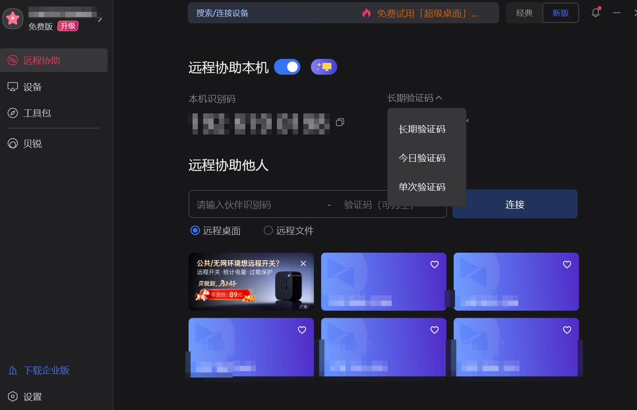向日葵提供了两种主要的认证方式:访问密码和账号密码。访问密码是针对单台设备设置的,类似于ToDesk的设备密码;账号密码则是绑定到向日葵账号的,可以管理多台设备。这种双模式设计给了用户更多选择,但也增加了配置的复杂度。