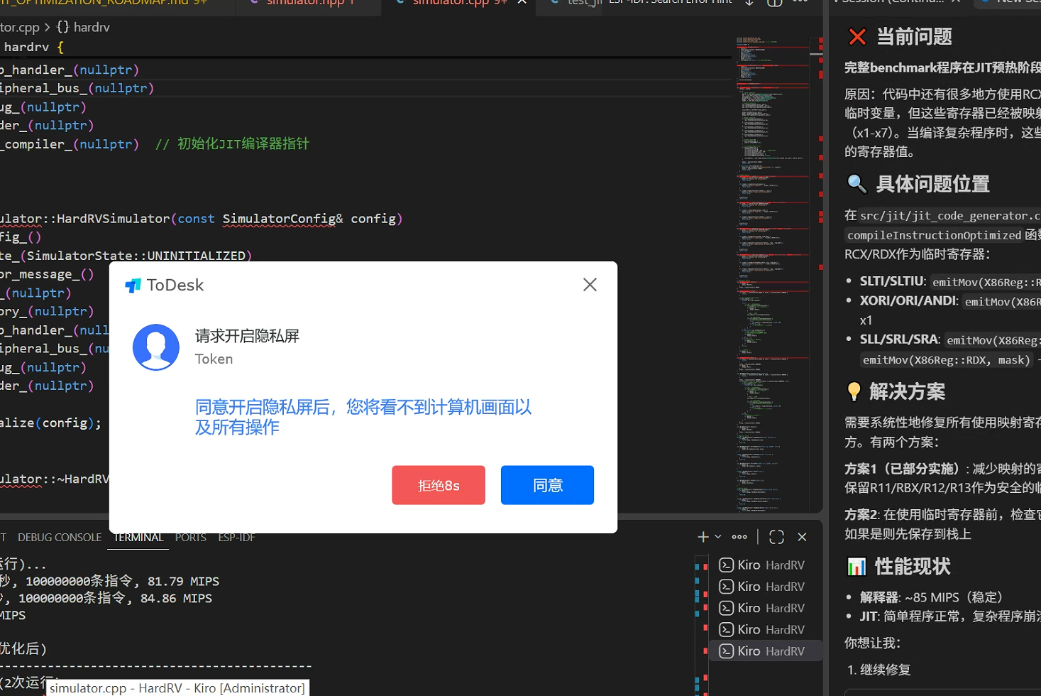 在实际远程控制场景中,有时候我们希望在被控端操作时保护现场隐私,避免别人看到屏幕上的敏感内容。ToDesk 在这方面做得比较贴心------它内置了隐私屏功能。