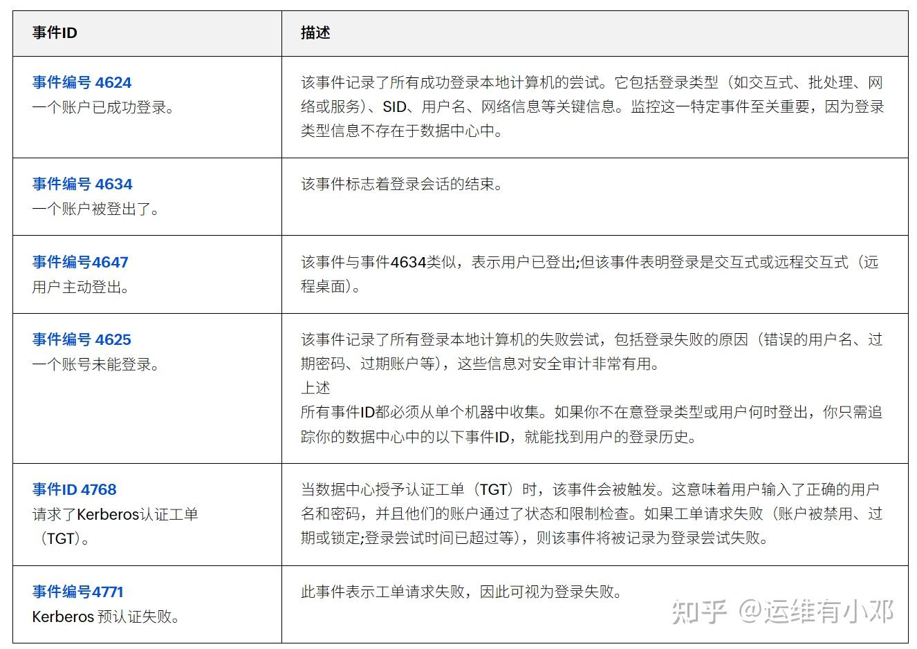 常见登录事件 ID 如下: