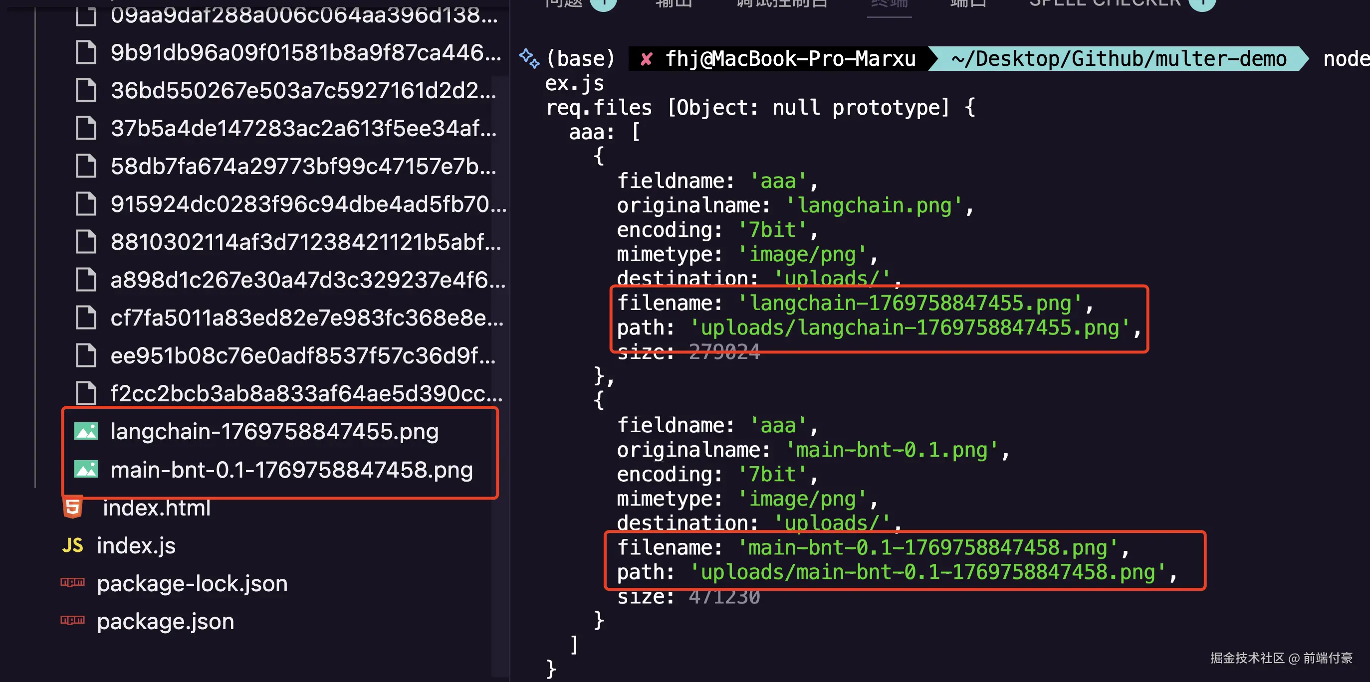 服务端多了 uploads 目录,下面保存着上传文件