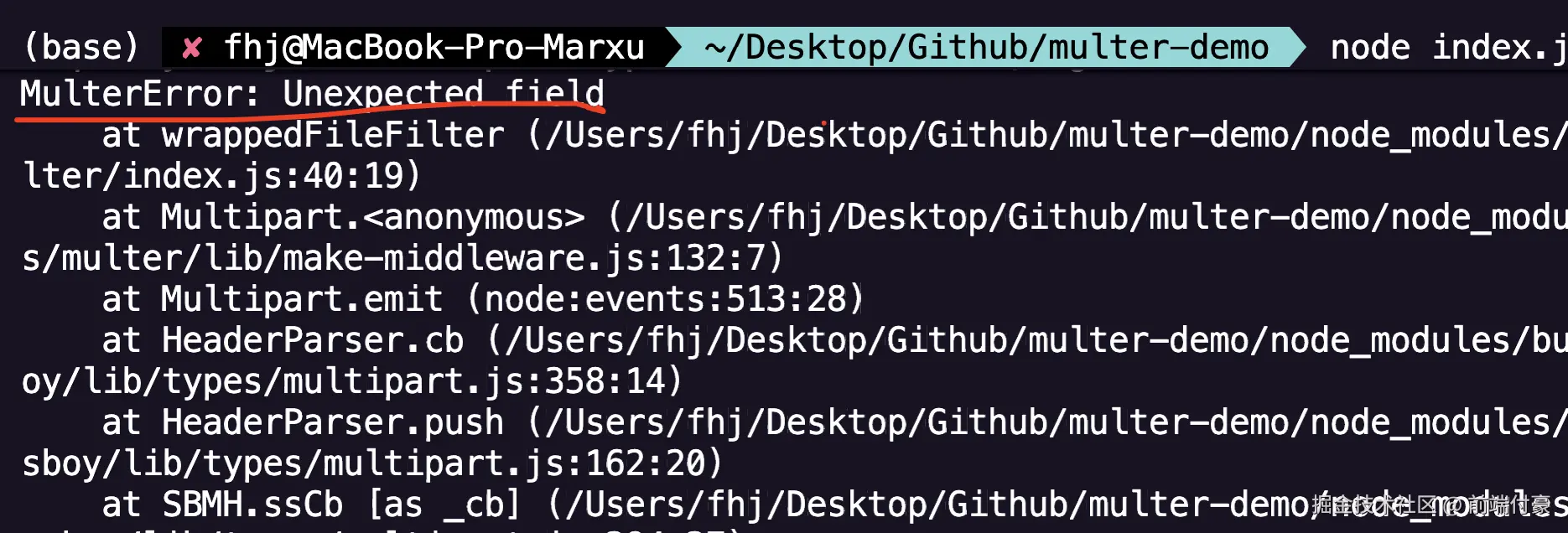 if(err instanceof multer.MulterError && err.code === 'LIMIT_UNEXPECTED_FILE') {