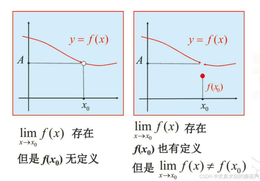 若 x→x0(x≠x0)x\rightarrow x_0 (x\neq x_0)x→x0(x=x0) 时,有 f(x)→Af(x)\rightarrow Af(x)→A ( AAA 是实数),