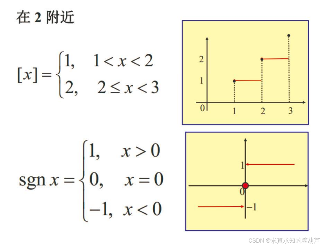 左、右极限不相等的情况常出现在分段函数的分界点处 (下图)。