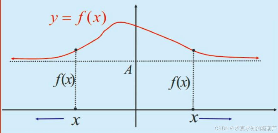 即 xxx 从正、负两个方向趋于无穷大时,函数 f(x)f(x)f(x) 以 AAA 为极限。