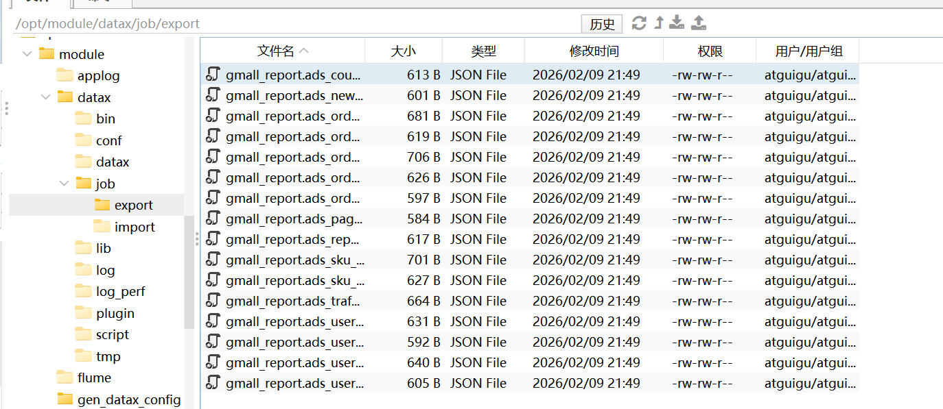 3.查看配置文件生成,在/opt/module/datax/job/export路径下应该有16个配置文件