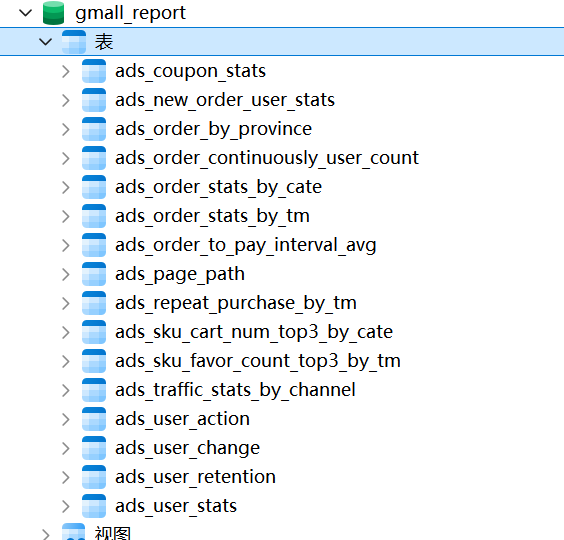 1.创建库,在MySQL新建下面的查询语句创建gmall_report库