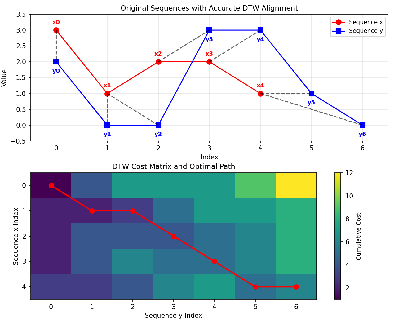 # 子图1:原始序列 + 精准DTW对齐路径 + 索引标注