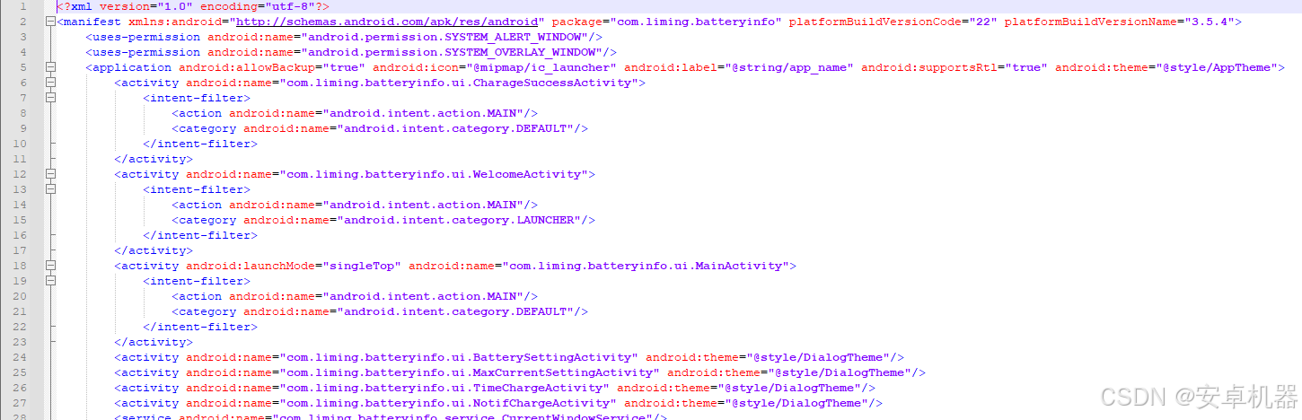 2----可以直接查看AndroidManifest.xml代码【需要使用默认电脑程序打开】