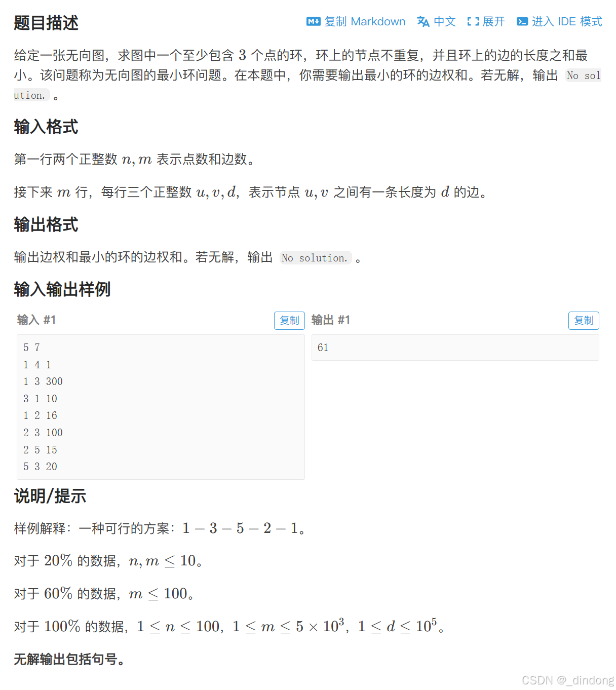 于是我们可以利用floyd算法,求出环编号最大为k时的最小环,环的权值和如下
