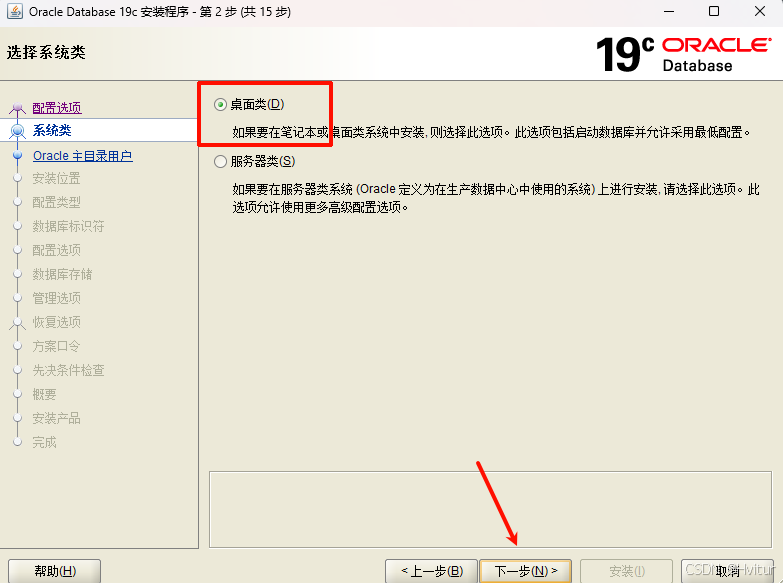 选择桌面类和选择服务器类会导致后面的安装步骤不同