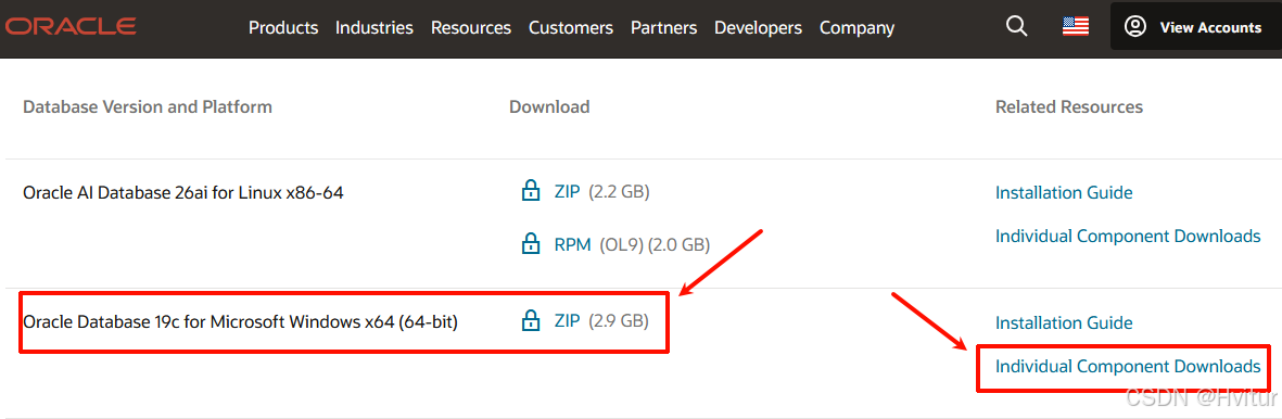 官网单组件下载地址:https://www.oracle.com/database/technologies/oracle19c-windows-downloads.html