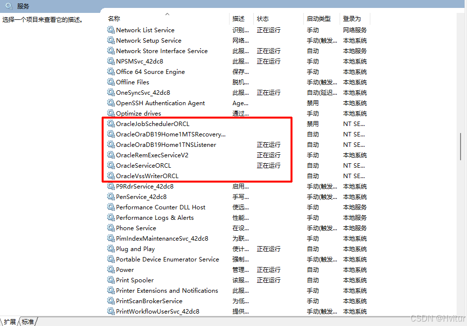 | OracleOraDB19Home1TNSListener | 本地监听服务,负责接收对本地 Oracle 数据库的连接请求 |