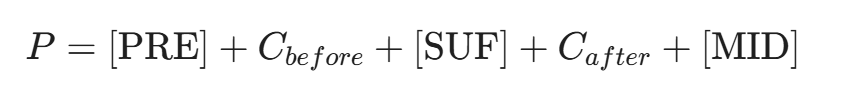 标准的 GPT 模型是自回归的(Autoregressive),即从左到右预测下一个词。但在修复场景中,我们往往需要修改代码中间的某一段。这就需要模型具备 FIM (Fill-In-the-Middle) 能力。