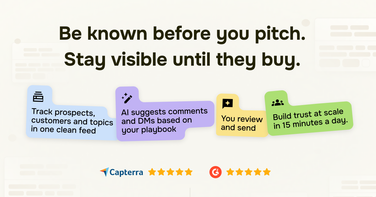 介绍:在LinkedIn上跟踪你的潜在客户、现有客户和相关话题。人工智能会根据你的操作手册建议评论和私信。你只需审阅并发送。每天花15分钟,就能大规模建立信任。