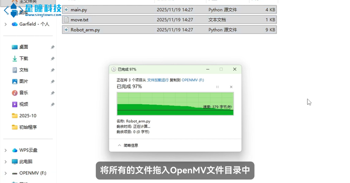 将本实战所需要的文件与代码拖入OpenMV文件目录中。