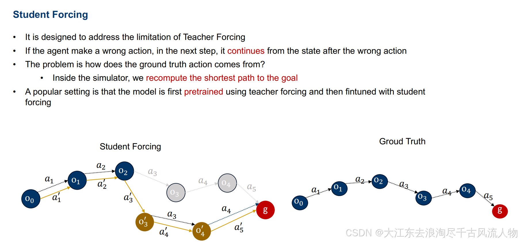 | Student-forcing | 模型自生成+环境 | 无偏差、泛化强 | 冷启动不稳、慢 |