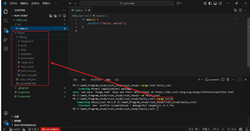 此命令会创建一个名为"项目"的新目录hello_rust,并为其填充标准项目结构。进入您的新项目目录: