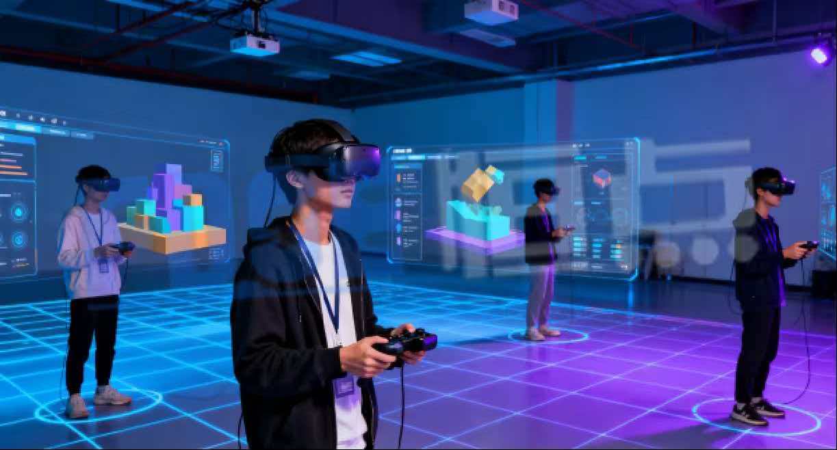 实训室以"技术复合性"培养为核心,覆盖数字媒体全链路技能:在AI应用层面,"AI灵感激发助手"通过自然语言交互,引导学生掌握"风格迁移、智能分镜"等核心能力,适配"人工智能+产业"中"智能原生人才"的需求;在XR技术层面,MR大空间协同系统、CAVE体验空间可开展"多人协同虚拟制片""沉浸式交互开发"实训,学生能独立完成从数字资产创建到作品发布的全流程,如使用VRC---Editor系统无需编程即可开发VR应用,大幅降低技术门槛;在成果转化层面,"XR作品分享平台(元宇宙)"支持作品一键发布为跨终端链接,毕业生作品集可嵌入虚拟展厅,呼应"新双高""核心技能培养"的要求。